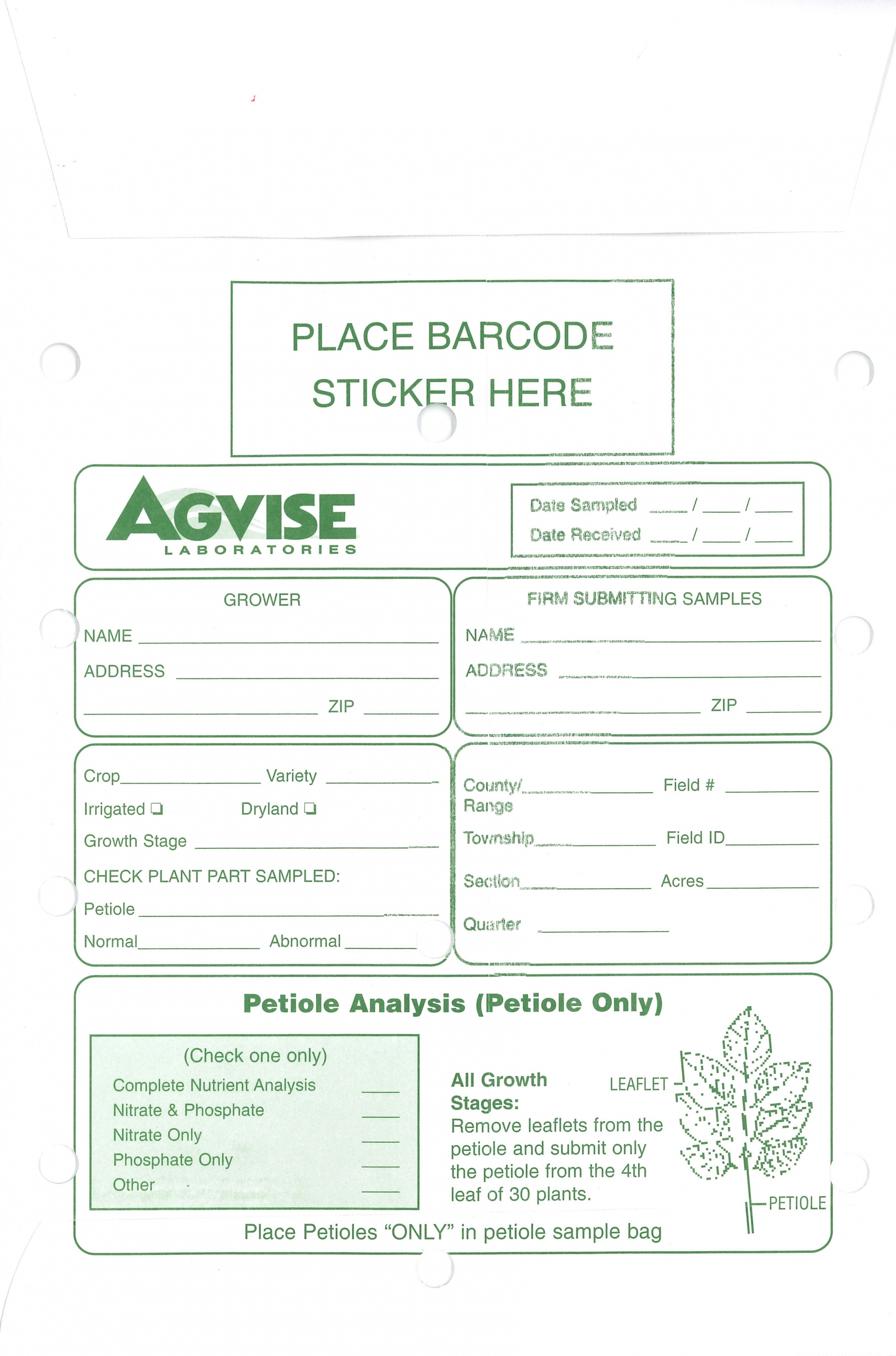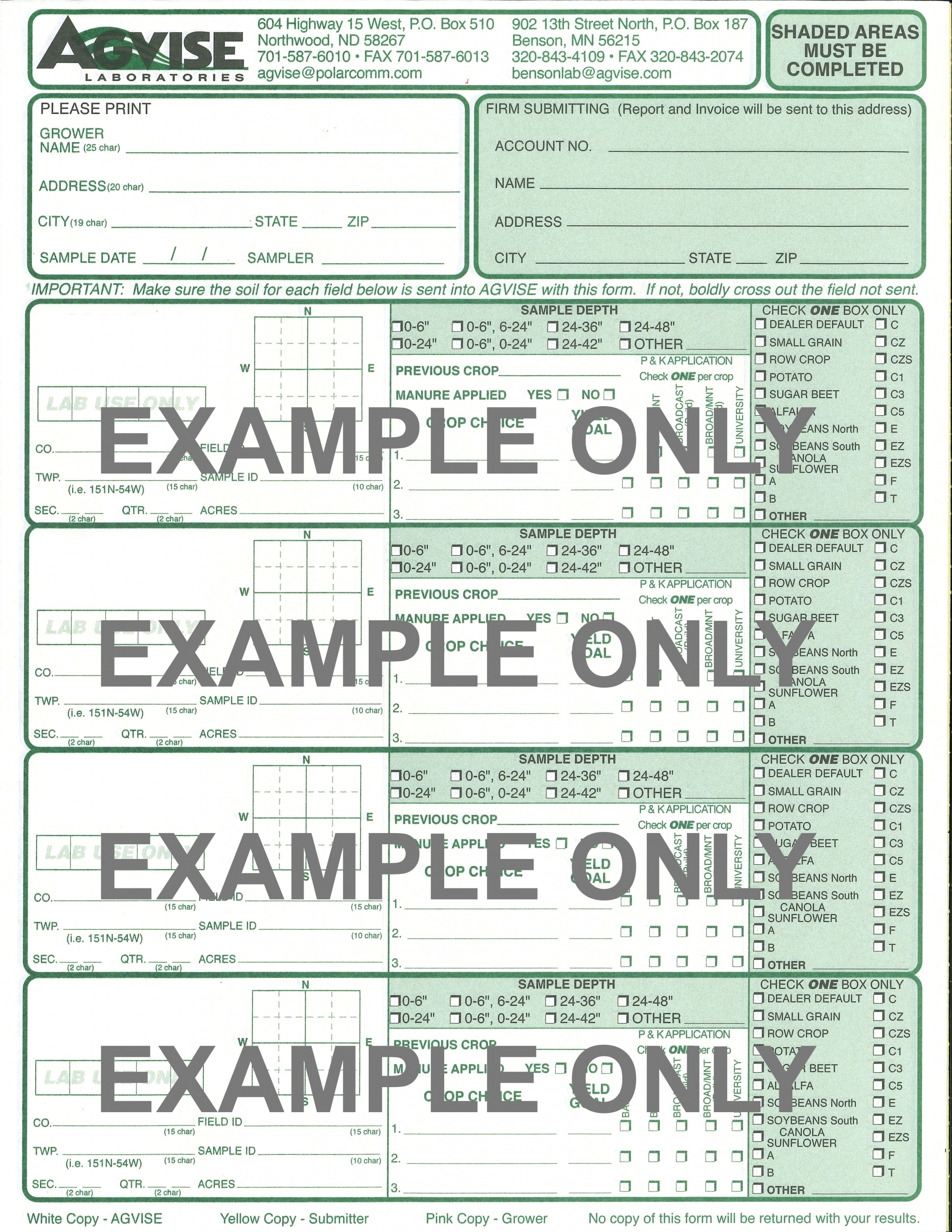 Soil Submission Form, Conventional 4-Field